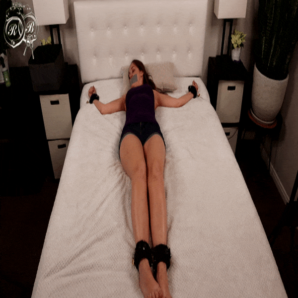 Rachel's next muscular challenge is to challenge my notorious chained bedtie. With brand new locking leather cuffs for her wrists and ankles connected to heavy gauge chain while grunting angrily beneath a sticky grey Kinesio tape gag, Ms. Adams flexes and struggles as hard as she can to break solid metal. This predicament is weaker than the previous ones, does she stand a chance?!